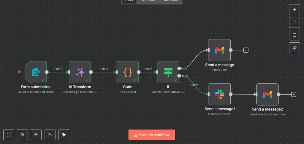 مثال: إذا وصلك بريد إلكتروني يحتوي على ملف مرفق، يمكن لـ n8n تلقائيًا حفظ الملف في Google Drive، ثم إرسال إشعار لك على Slack.